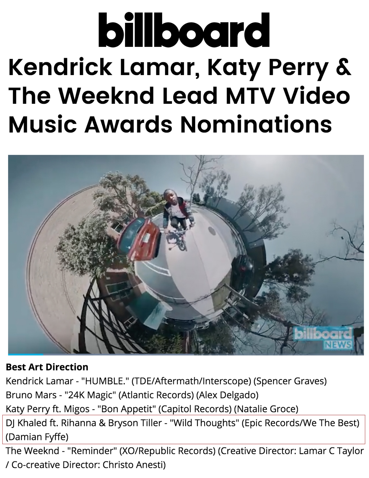 7.25.17 – Billboard – Kendrick Lamar, Katy Perry & The Weeknd Lead MTV Video Music Awards Nominations