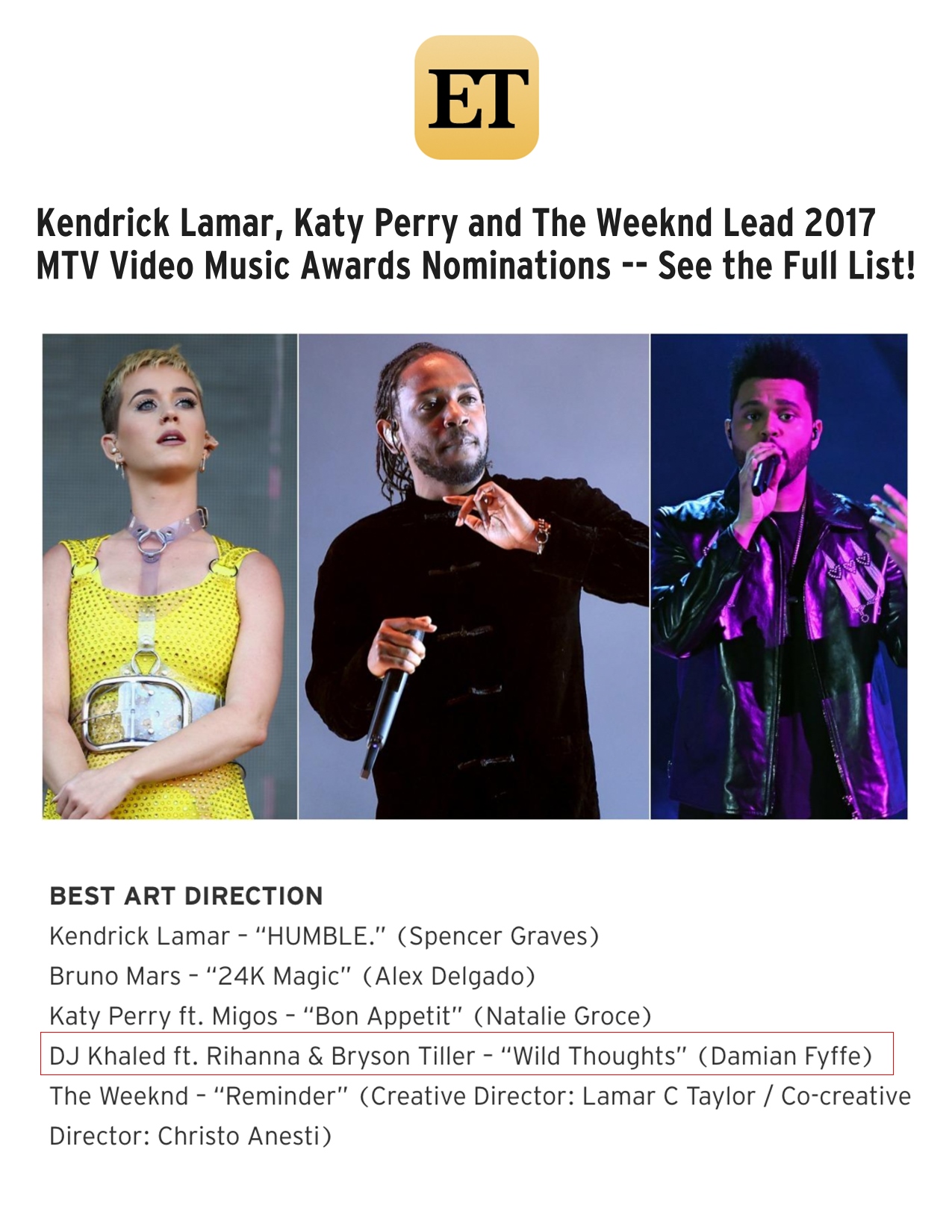 7.25.17 – VH1 – Kendrick Lamar, Katy Perry, Bruno Mars are Totally Dominating the 2017 VMAs Nominations