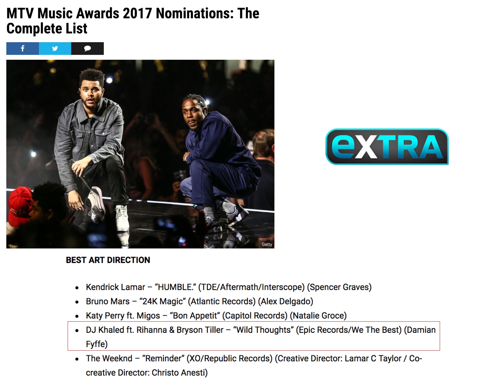 7.25.17 – Extra – MTV Music Awards 2017 Nominations: The Complete List