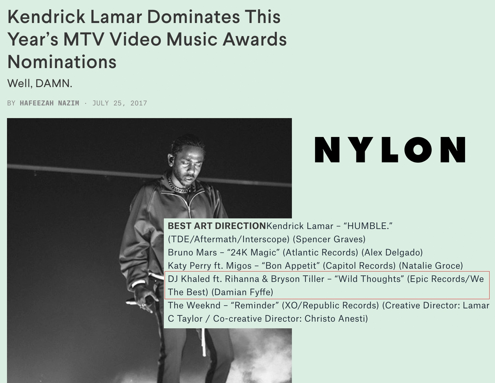 7.25.17 – NYLON – Kendrick Lamar Dominates This Year’s MTV Video Music Awards Nominations