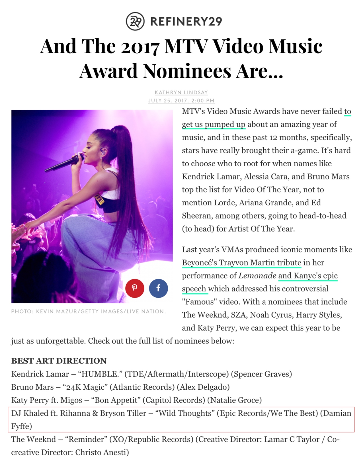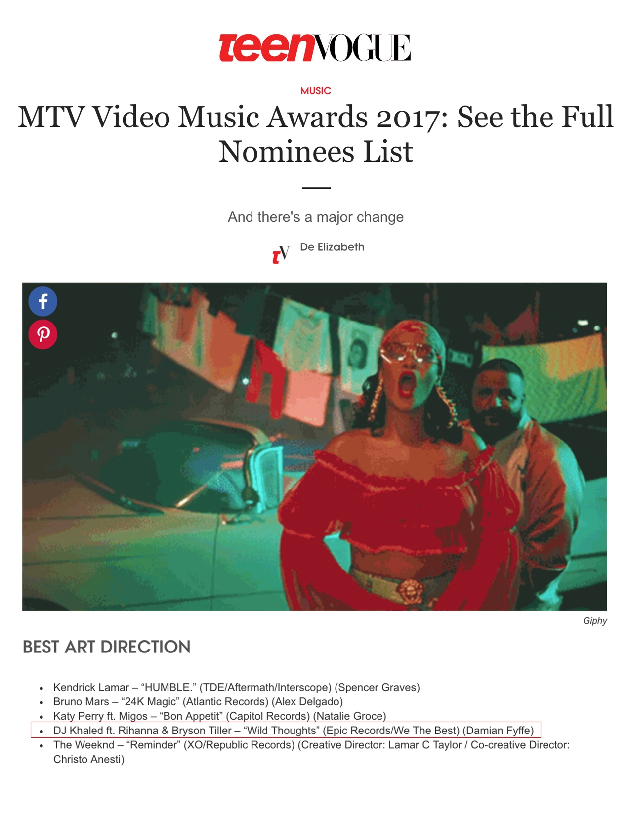 7.25.17 – Teen Vogue – MTV Video Music Awards 2017: See the Full Nominees List