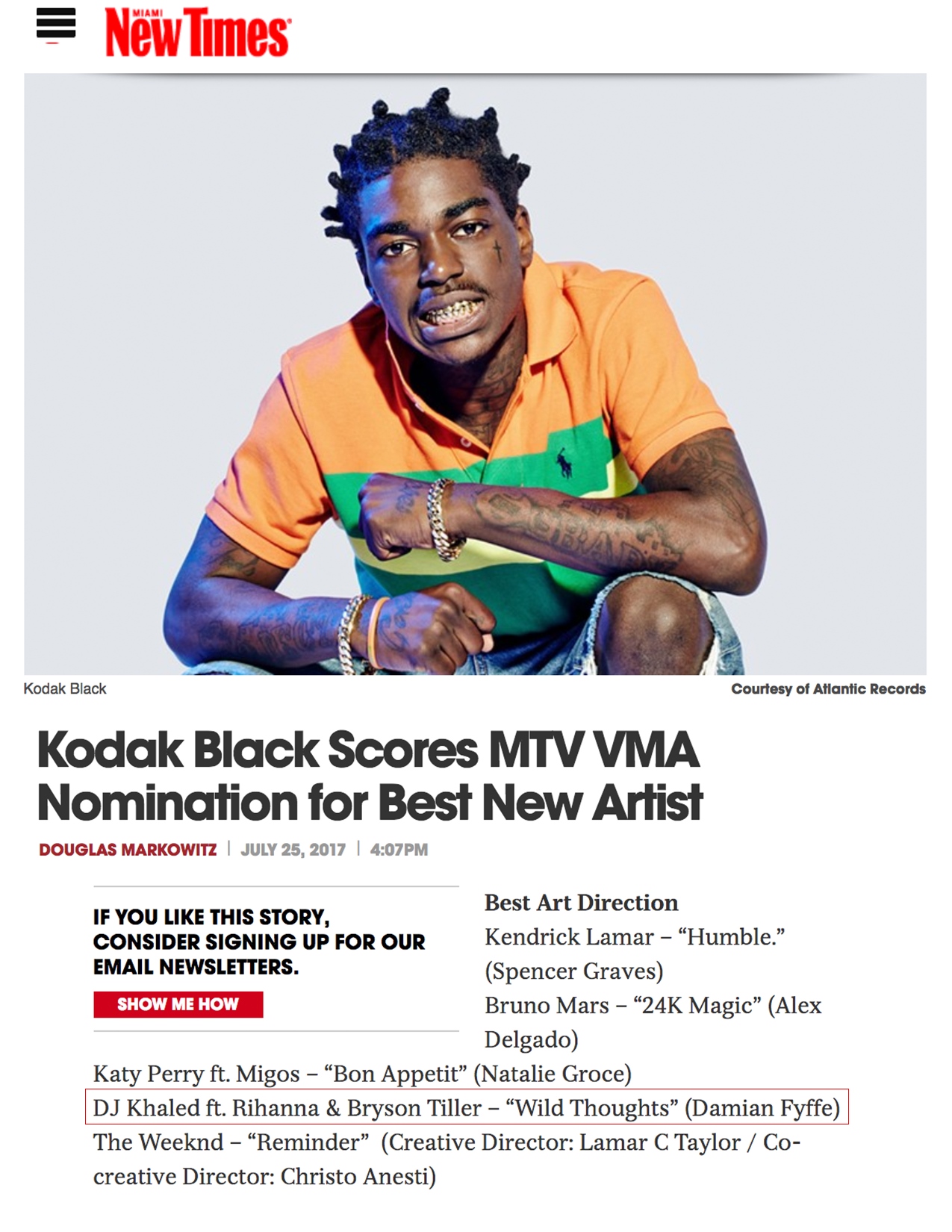 7.25.17 – Miami New Times – Kodak Black Scores MTV VMA Nomination for Best New Artist